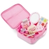 В набор входят : зеркало, расческа, губная помада, лак для ногтей, пилочка, палитра теней для век, духи, карандаш, пудреница и кисточка для макияжа. Легко взять с собой.