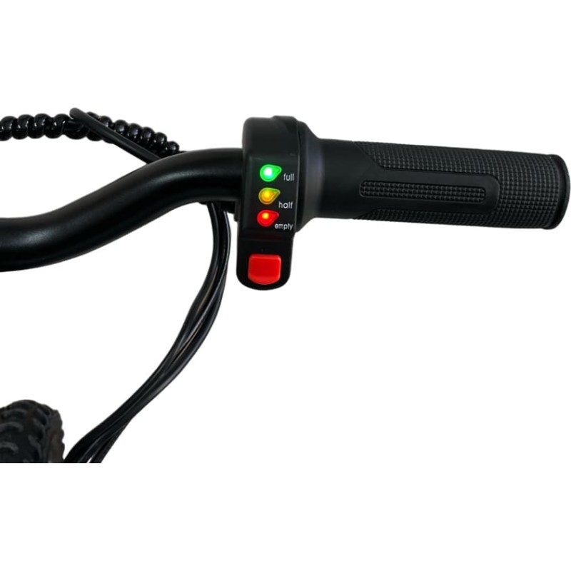 Мощность и удобство: Биговел оснащен литиевой батареей 24V, которую можно легко снять для подзарядки отдельно от устройства. Двигатель мощностью 180 Вт с цепным приводом обеспечивает плавный ход и предлагает два режима скорости: 10 км/ч для безопасного обучения и 18 км/ч для драйвовых приключений. рельефи.