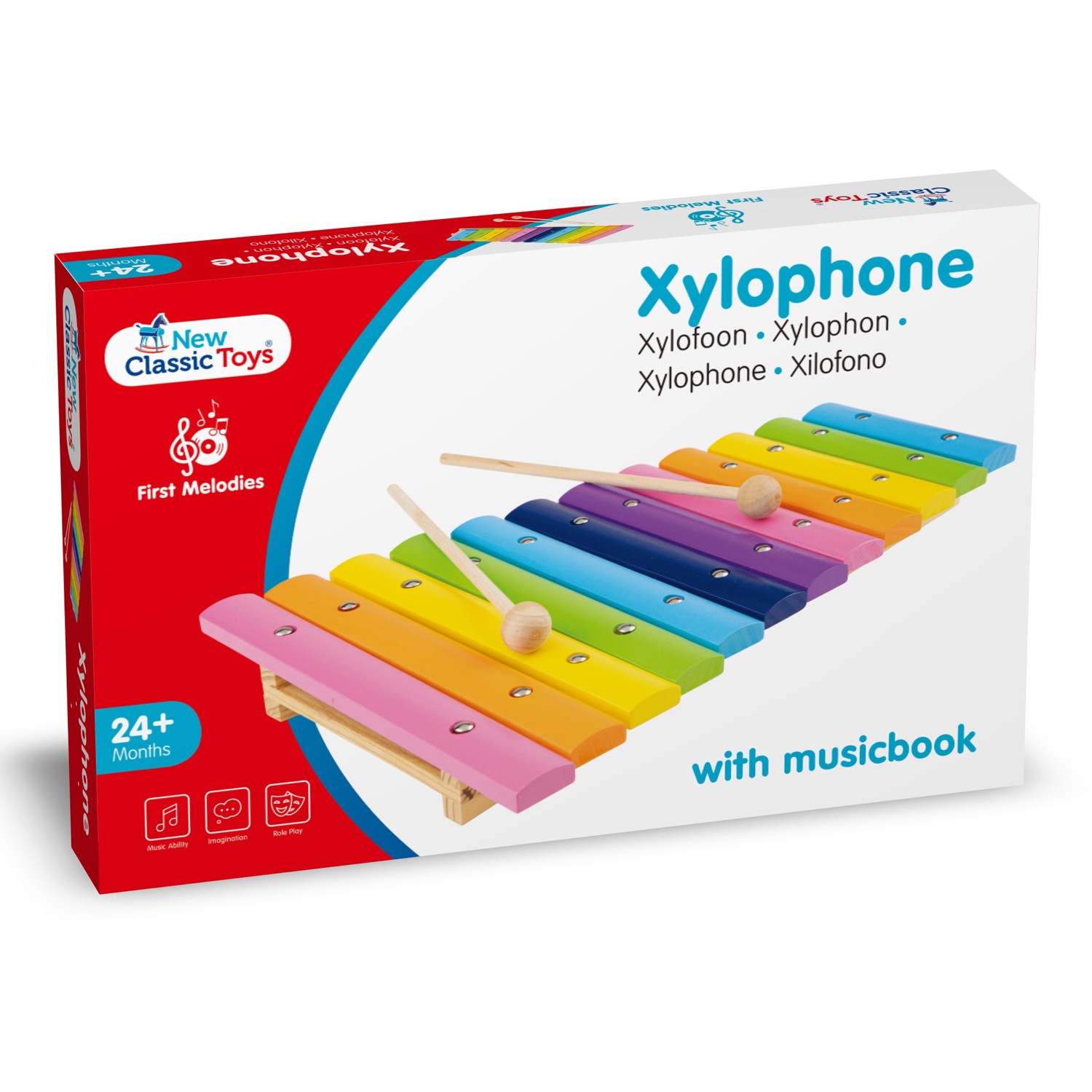 New Classic Toys' colorful xylophone is perfect for little beginners who love to make sounds. It's fun, educational and the perfect musical instrument to develop hand-eye coordination in kids and encourage musical creativity. Comes with a pair wooden beaters.