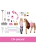 Welcome to Barbie's magical stable - a place where friendship with a horse turns into an incredible adventure! Play set Barbie Mysteries: Extreme Stable, inspired by the cartoon "Barbie: Mysterious Adventures. The Great Horse Chase" contains more than 25 elements and 6 game zones. Kids can help Barbie feed her horse, take care of it in the grooming area, train on the show jumping fence, celebrate victories by decorating the wall with ribbons, or tend to the blooming rose garden. When the adventures are over, the stable folds up easily, keeping all the details inside.