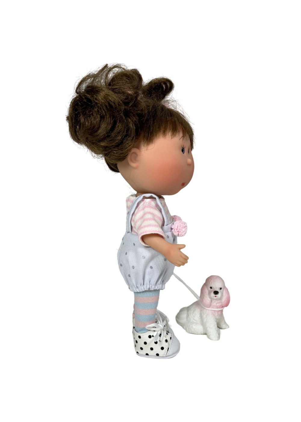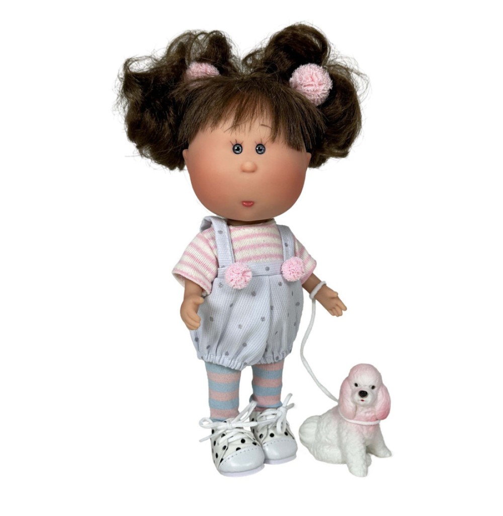 Little Mia doll from Nines d'Onil is a charming friend who can instantly win a child's heart. Her vinyl body is suitable for swimming, so the game can continue even during water adventures. Dark hair, gathered in cute ponytails with pompoms, and blue eyes create a particularly touching image. Pink and blue clothes and shoes in tone add tenderness and make Mia truly stylish. And the little puppy included in the set turns the game into a whole story of friendship and care, inspiring new plot fun.