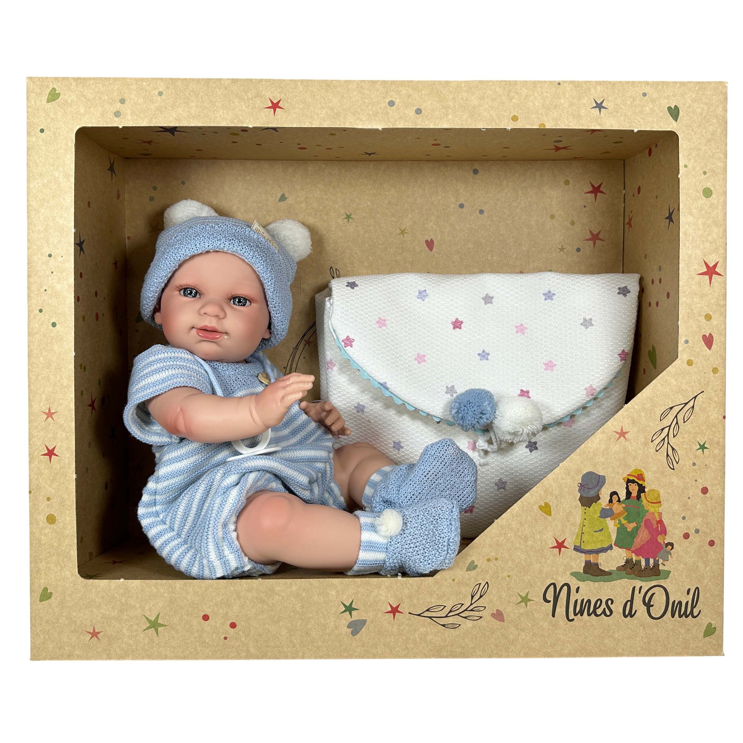 The Reborn doll from Nines d'Onil in blue clothes is designed to give children special emotions and warm moments of care. Its realistic vinyl body with a pleasant aroma and movable joints allow you to easily change poses and dress the doll, making the game even more exciting. Thanks to natural mink eyelashes and delicately crafted facial features, the doll looks extremely believable. The set includes a practical changing table, a pacifier with a holder, a newborn bracelet and a birth certificate - everything you need for a full-fledged play story. Such a doll will be a great gift and will help your child develop empathy, caring and creativity in everyday games.