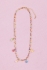 The necklace consists of a gold chain with beads and a bright metal chain with colored stones. It is decorated with shining pendants in the form of flowers and teddy bears - everything that little fashionistas love so much.
