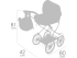 Dimensions: Approximate dimensions of the stroller when open: 80-83 cm (length) x 42 cm (width) x 81 cm (height to handle). Internal dimensions of the cradle: 47 cm (length) x 25 cm (width).