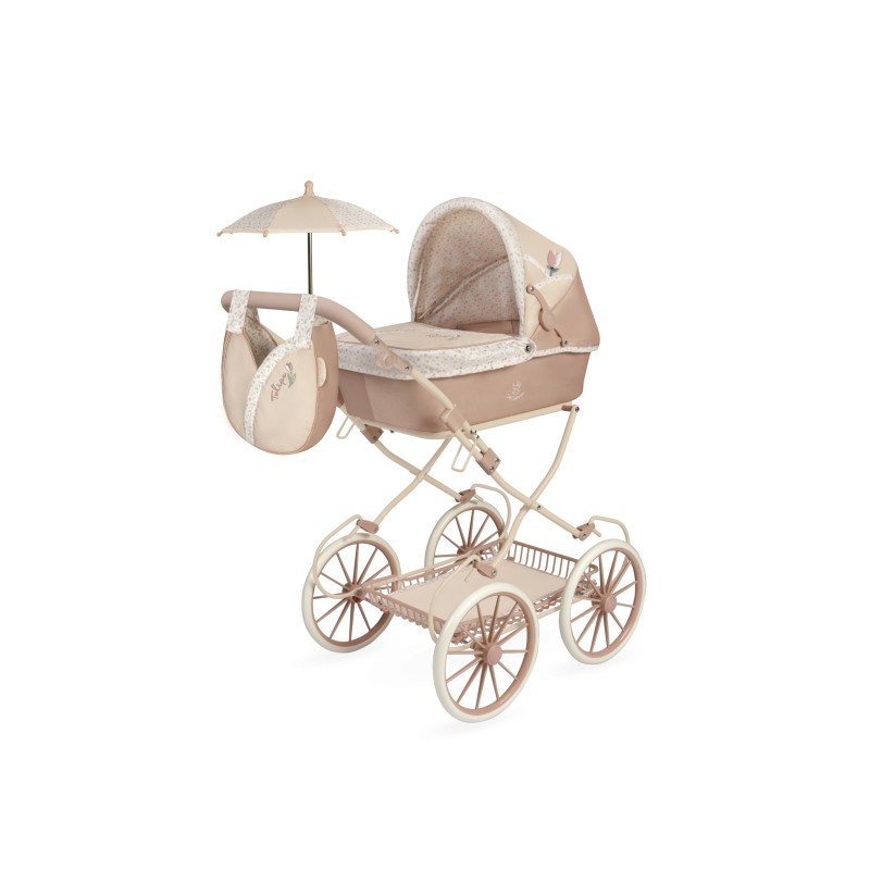 This elegant and realistic doll stroller from Spanish brand DeCuevas Toys turns mother-daughter play into a real adventure. Made of high-quality, safe materials in soft pink tones, it combines vintage design with modern functionality.