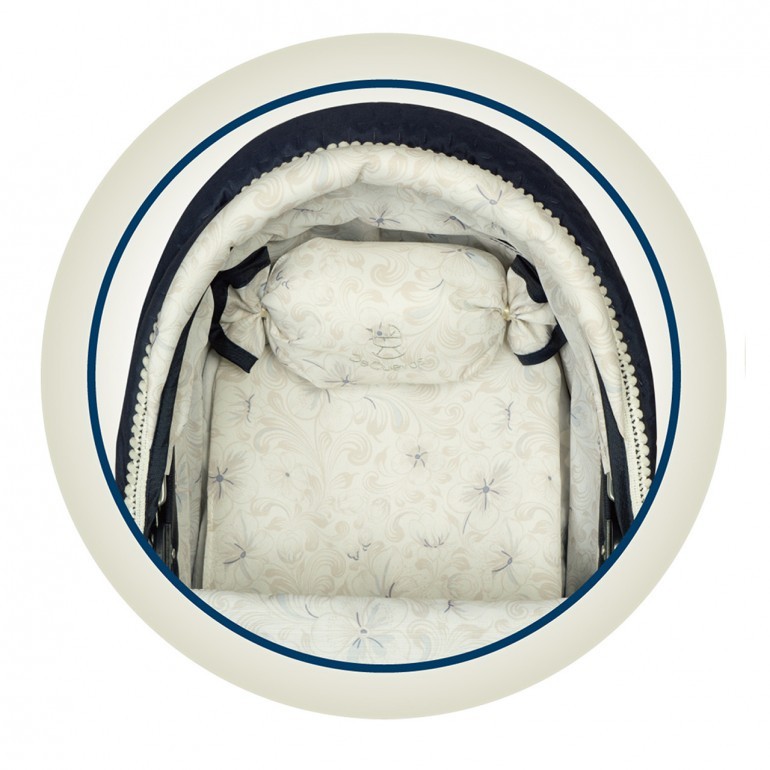 Design and style: Classic vintage design in navy and white, with delicate details and bows.