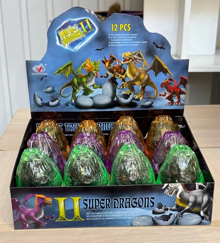 В каждом прозрачном яйце вас ждёт грозный дракон, готовый к фантастическим приключениям. Детализированная фигурка оживляет игру, позволяя создавать собственные легенды и истории волшебного мира. Собирайте разных драконов, чтобы расширить свою коллекцию или придумать новые сюжеты сражений и приключений. Идеальная игрушка для игр, фантастических историй и маленьких сюрпризов.