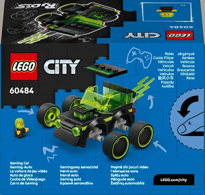 Комплектация: Детали для постройки геймерского авто, минифигурка водителя в фирменном костюме и пошаговая иллюстрированная инструкция.