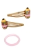 Этот волшебный набор аксессуаров для волос – настоящая находка для маленьких модниц! В комплект входят две блестящие заколки для волос с оригинальным дизайном, а также две эластичные резинки — идеальные для создания разнообразных причесок. Эти звездные безделушки не только придают яркий блеск любому образу, но и станут великолепным дополнением к школьной прически. Без сомнения, каждый, кто получит этот набор, будет поражен! Рекомендованный возраст: от 3 лет Размеры: прибл. 5 см, Ø ок. 3 см