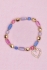 Браслет з кольорових намистин у рожево-лавандових відтінках прикрашений чудовою підвіскою у вигляді серця, оточеного блискучими камінцями.