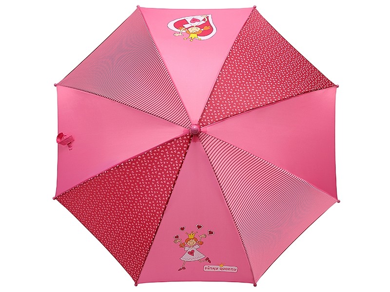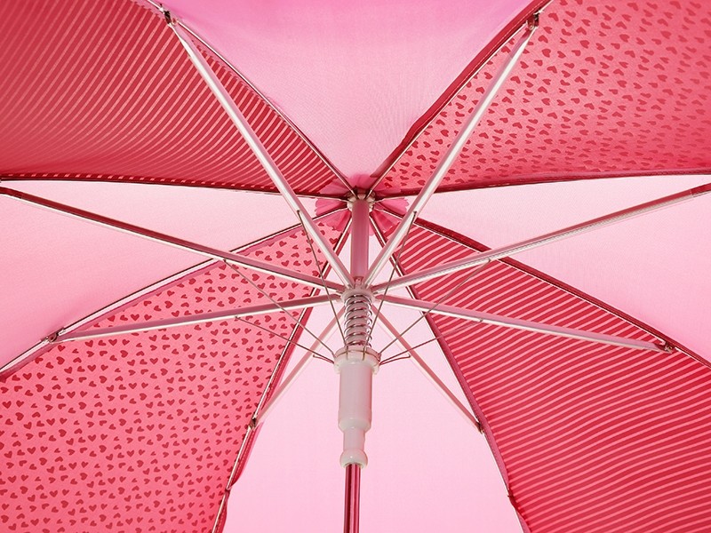 Оригінальна парасолька-тростина від німецького бренду sigikid для задумливих дівчат. Яскравий та практичний аксесуар рожевого кольору із зображенням принцеси та сердечок. Механізм – напівавтомат. Кольоровий купол відкривається одним натисканням кнопки. Він виготовлений із поліестеру, пластикові елементи – з поліпропілену, а спиці – металеві. Спиці під куполом захищені прозорими пластиковими чохликами, а на кінцях - пластиковими наконечниками, тому парасолька абсолютно безпечна для дітей і оточуючих. span>