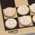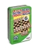 Дошка складається з чотирьох частин-пазлів, а дерев’яні фішки з малюнками фігур зберігаються у стильній металевій коробці.