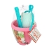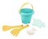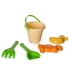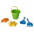 Набір для піску "Вежа еластична" 5 ел. складається з відерця-вежа, яке може виконувати функцію формочки для зведення пісочних замків, лопатки, грабельок і двох пасочок.