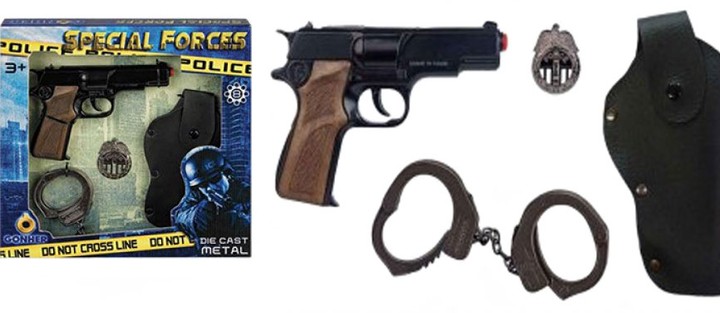 Ігровий набір GONHER “Поліцейський” — це комплект із 4 предметів, створений для захопливих сюжетно-рольових ігор у правоохоронців. У наборі — металевий поліцейський пістолет із відкривним магазином, кобура, металеві наручники та значок.