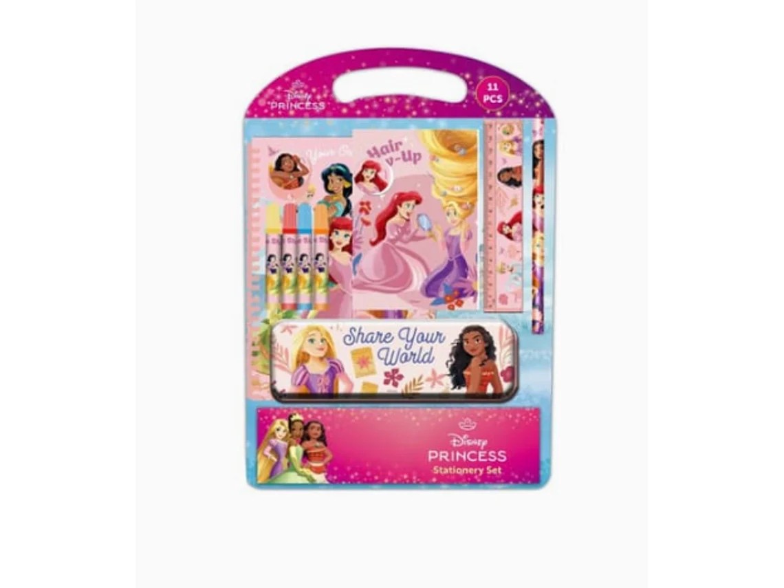 Письмовий набір із зображеннями улюблених принцес Disney — чудовий подарунок для творчої дитини. Усе необхідне для малювання, письма та нотаток зібрано в одному комплекті. Набір включає блокнот на спіралі, альбом для малювання, лінійку, ластик, точилку, олівець, 4 маркери та пенал для зберігання приладдя. Яскравий дизайн і зручне упакування роблять цей набір ідеальним для школи або творчих занять удома.