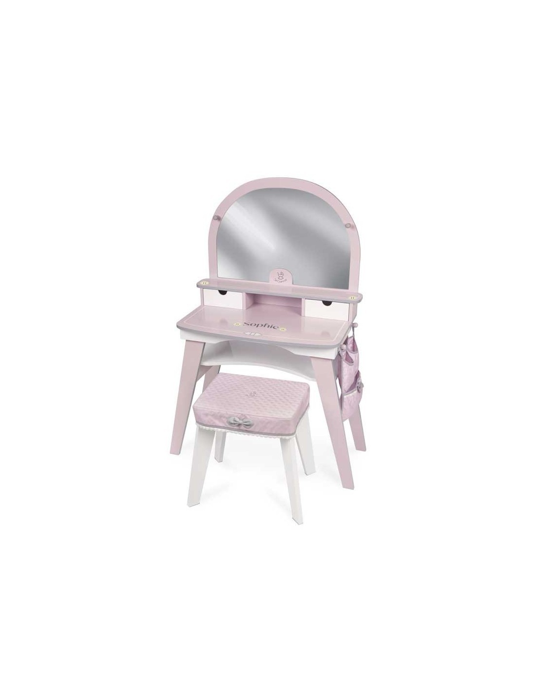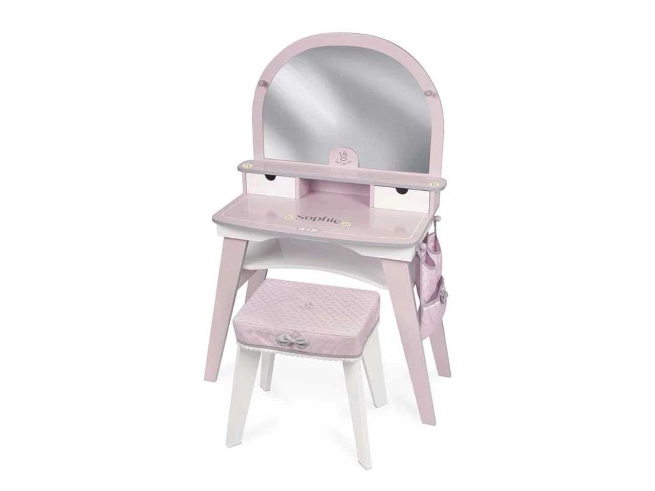 Цей елегантний та функціональний дерев'яний туалетний столик від іспанського бренду DeCuevas Toys – ідеальне місце для маленької принцеси, щоб організувати свій куточок краси, граючи у доросле життя. Виконаний у ніжних рожевих та білих тонах (колекція Niza), він має витончений дизайн та міцну конструкцію.